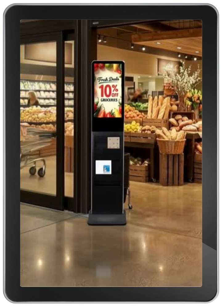 SmartAds grocery standing displays deliver high-visibility digital advertising inside grocery stores, placing your brand directly in front of shoppers during active purchase decisions.